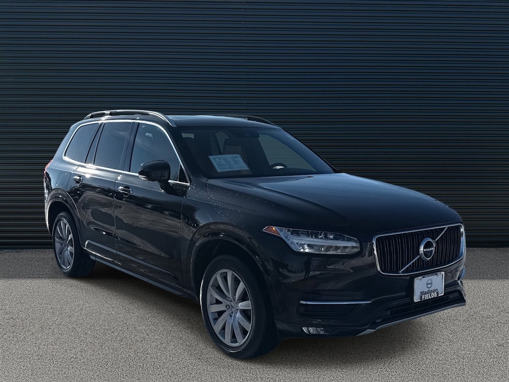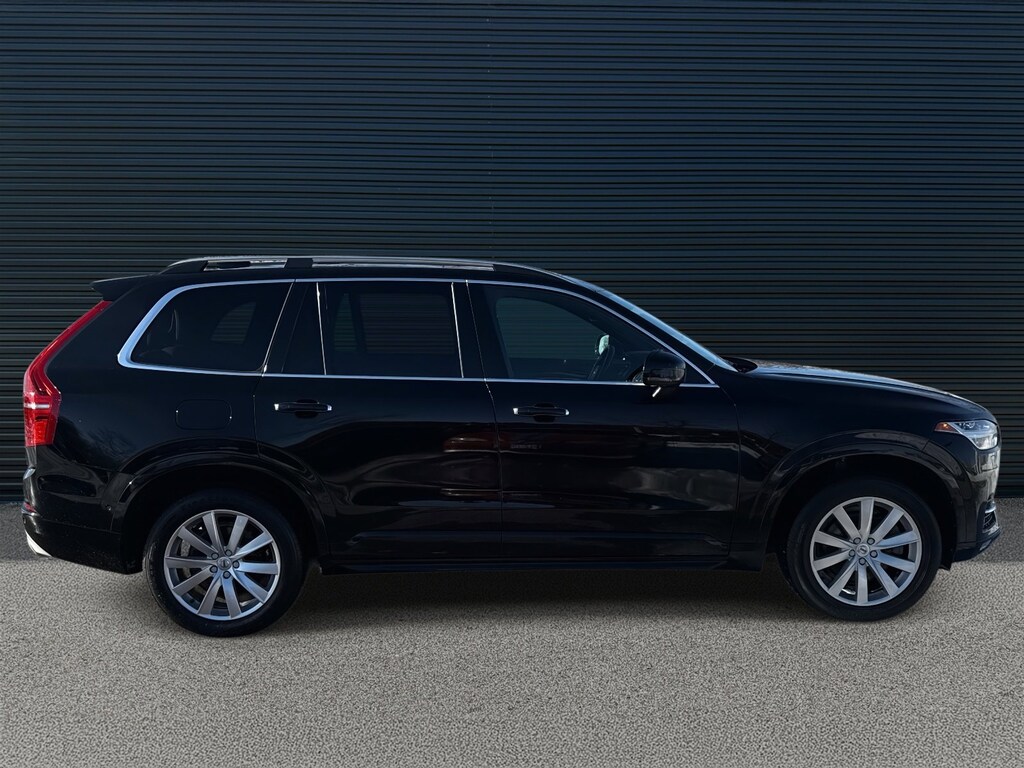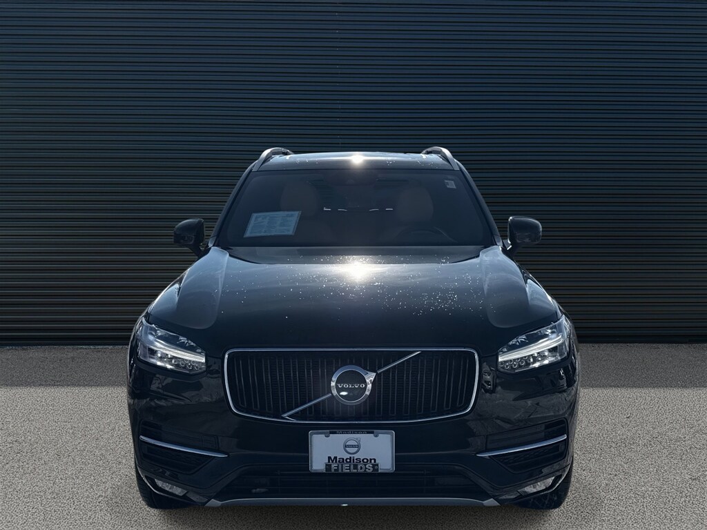 Onyx Black Metallic 2018 Volvo XC90 T6 Momentum AWD Automatic with Geartronic I4 Supercharged AWD, Amber Leather, 10 Speakers, 12V Power Outlet in Cargo Area, 360-Degree Surround View Camera, Active Bending Lights, AM/FM radio: SiriusXM, Apple CarPlay/Android Auto, Auto High-beam Headlights, Compass in Inner Rear View Mirror, Convenience Package, Dark Flame Birch Wood Inlays, Emergency communication system: Volvo On-Call, Exterior Parking Camera Rear, Front dual zone A/C, Front fog lights, Grocery Bag Holder, Headlight High Pressure Cleaning, Heated door mirrors, Heated front seats, Heated Steering Wheel, Heated Washer Nozzles, HomeLink, Illuminated entry, Interior High Level Illumination, Leather Seating Surfaces w/Charcoal Interior, Momentum Plus Package, Navigation System, Park Assist Pilot, Power Liftgate, Power moonroof, Radio: High Performance Audio System, Rear air conditioning, Rear dual zone A/C, Rear Parking Sensors, Remote keyless entry, Roof rack: rails only, Split folding rear seat, Telescoping steering wheel, Tilt steering wheel, Wheels: 19" 10-Spoke Turbine in Silver Bright.